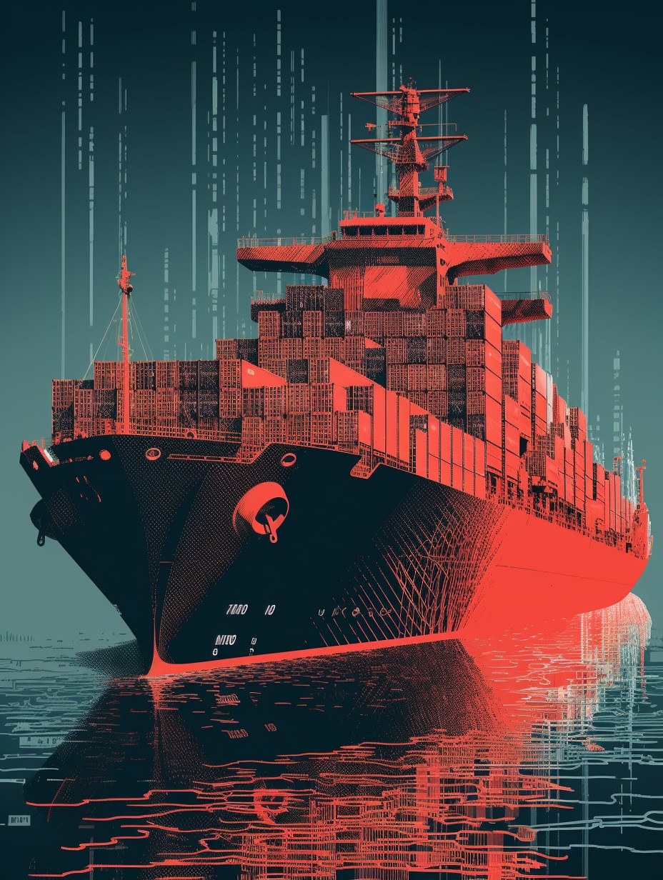 以掃描的密碼圖像為筆觸,表現航船的強大科技感